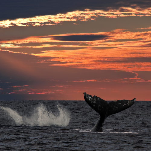 These whales are aptly named for their mottled grey colouration. They feature broad, paddle-shaped pectoral flippers with pointed tips and lack a true dorsal fin, instead displaying a prominent dorsal hump about two-thirds of the way down their back.
